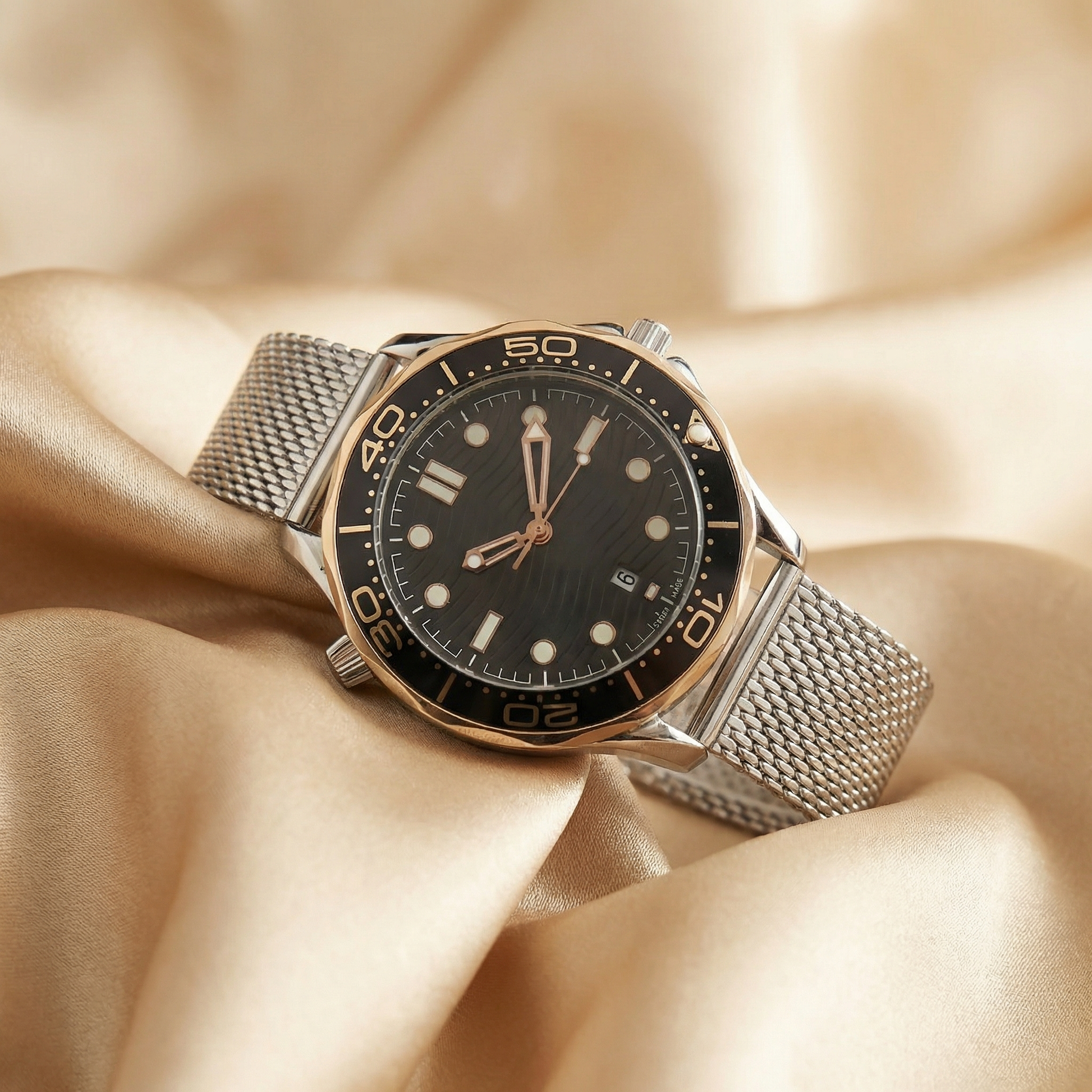 • Stainless steel mesh strap for lasting comfort