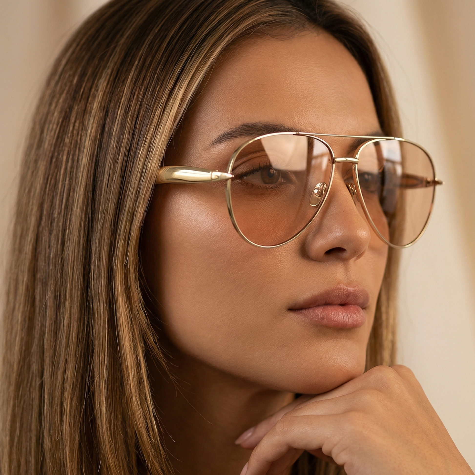 • Elegant gold-tone aviator frame with refined finish