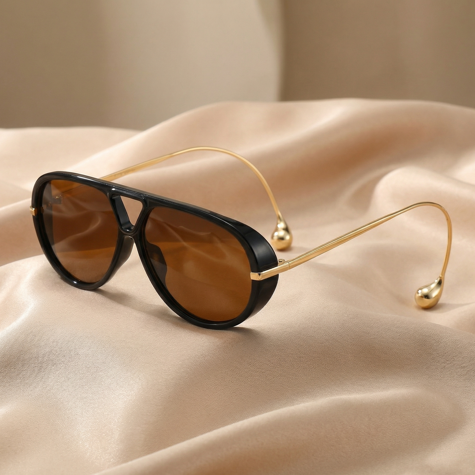 • Elegant aviator design with gold metal and premium style finish