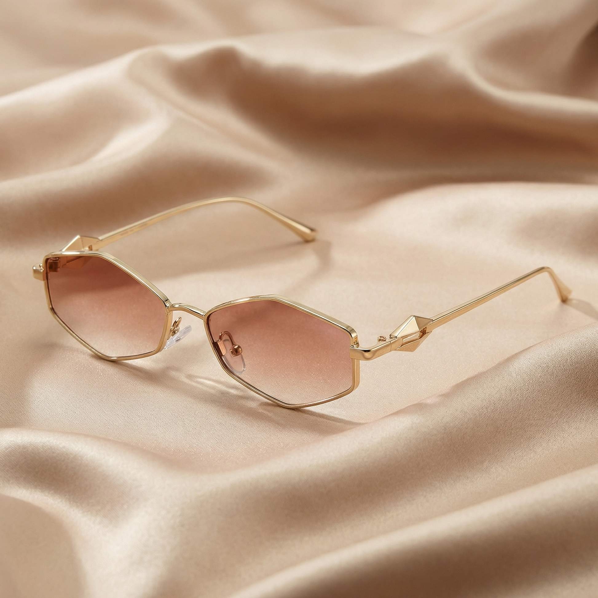 These luxury rimless sunglasses feature a sharp geometric silhouette combined with a refined gold-tone metal frame for a modern, high-end look. The minimalist design highlights the lenses, creating a clean and elegant aesthetic that feels both contemporary and timeless. Designed to elevate everyday outfits, these sunglasses offer a sophisticated statement with subtle designer appeal. Available in multiple distinctive lens color options.