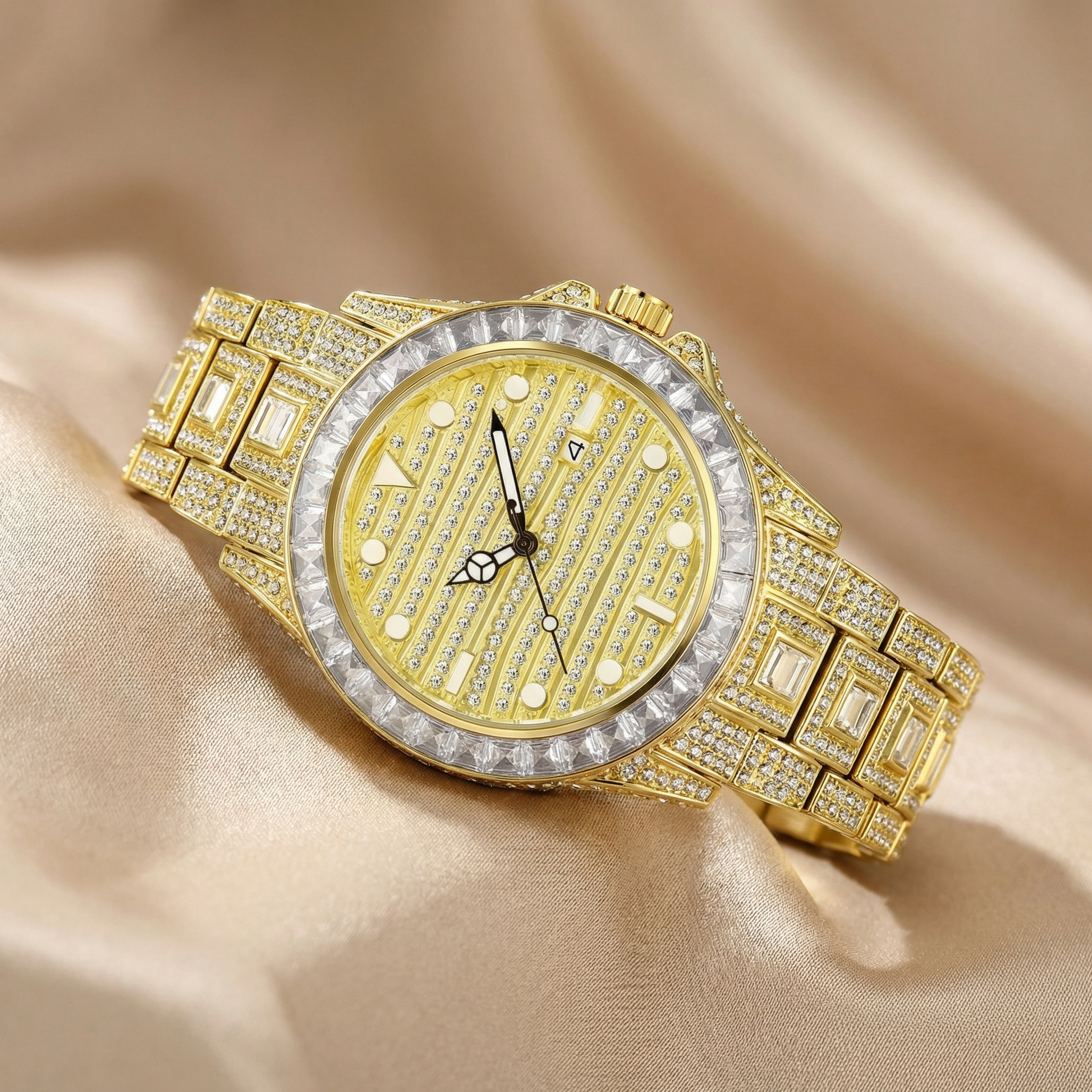 The Luxury Iced Bracelet Women Watch is designed for women who love shine, confidence, and modern elegance. Featuring a fully crystal-set dial, sparkling bezel, and bold bracelet design, this watch adds instant glamour to both everyday and evening outfits.