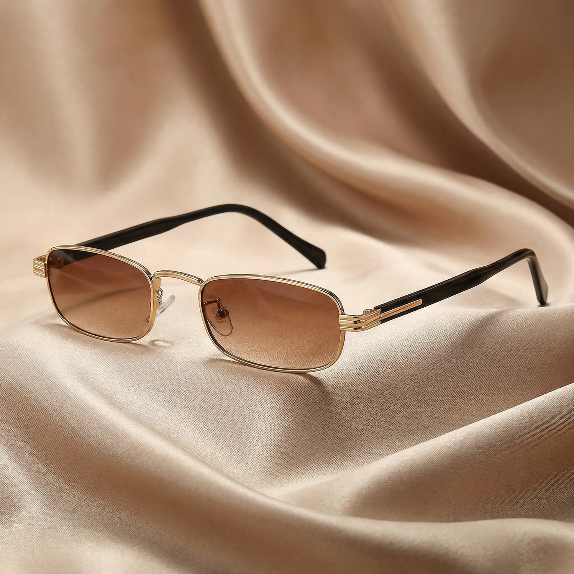 These luxury rectangular sunglasses combine timeless elegance with modern fashion appeal. Designed with a refined gold metal frame and stylish green and brown lenses, they offer the perfect balance between comfort, sophistication, and everyday wearability. Ideal for spring and summer outfits, these sunglasses elevate both casual and chic looks with effortless style.